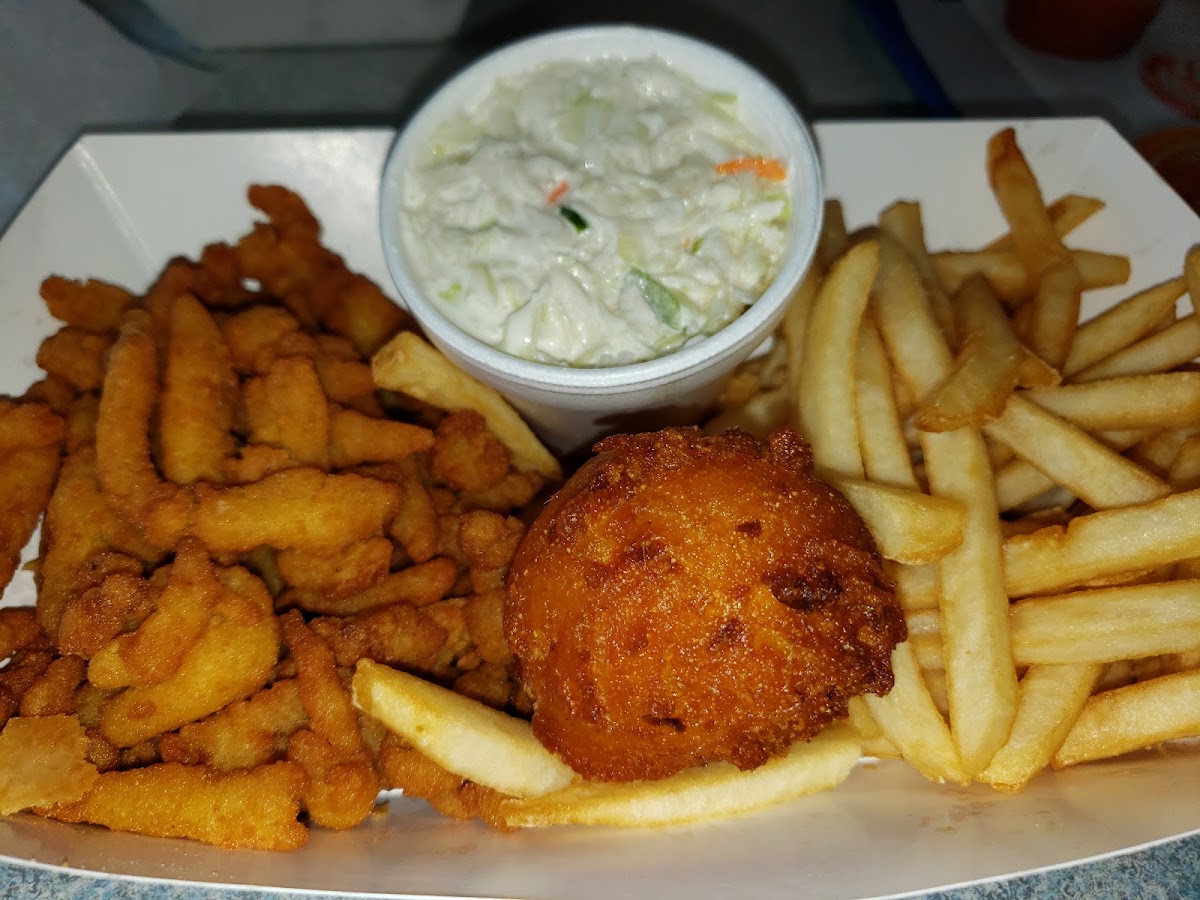 11-28-22 about 2:25pm: Inside still closed to dine in but able to come in and order. Wanted to try something not back home and had good reviews. I tried the shrimp and fish combo along with cheesesticks. Lady at the counter was helpful as I've never been here, being from Dallas and here for work. Shrimp was great. Fish was good. Fries were lukewarm so meh. Big hushpuppie was ok. Cheesesticks were ok. Sweet tea was great. I'd recommend the shrimp and a sweet tea personally.